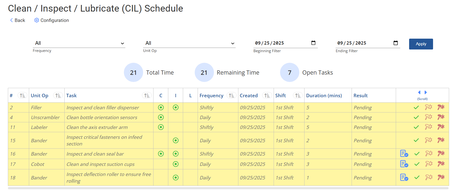 CIL tasks keep equipment in base condition shift after shift. Linked standards ensure inspections, cleaning, and lubrication are always done correctly and consistently.