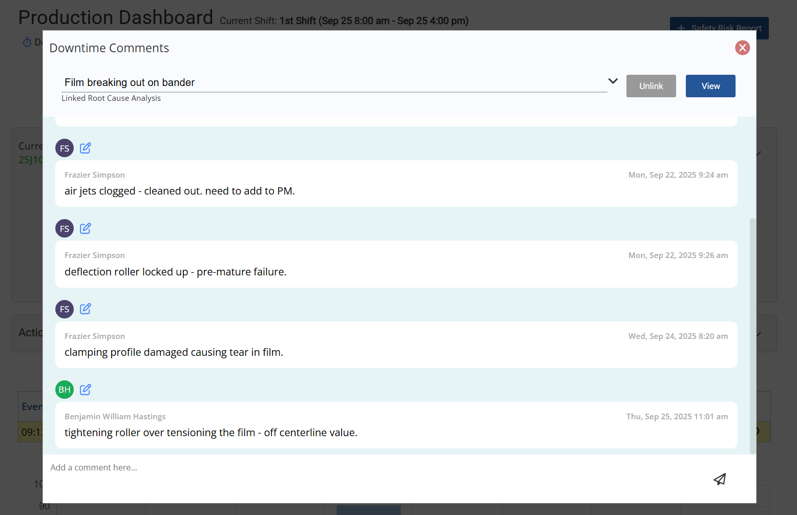 Connect investigations directly to related downtime events in the Operations Production Dashboard. Quantify the impact of recurring issues, see what’s been tried, and know what actually worked.
