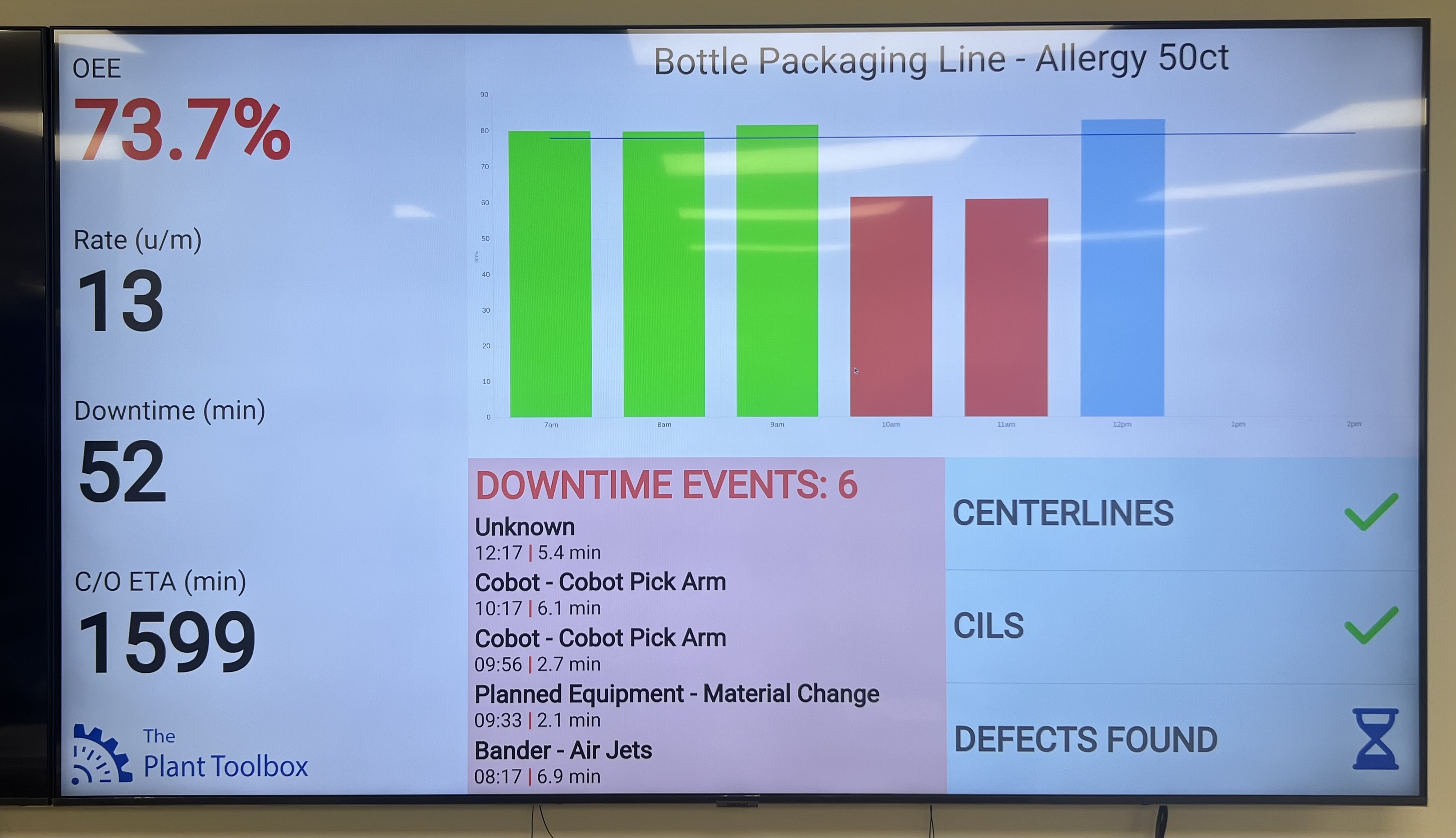 The Line Display projects live production status right on the floor. Operators, leaders, and visitors alike see if the line is on track against targets at a glance.